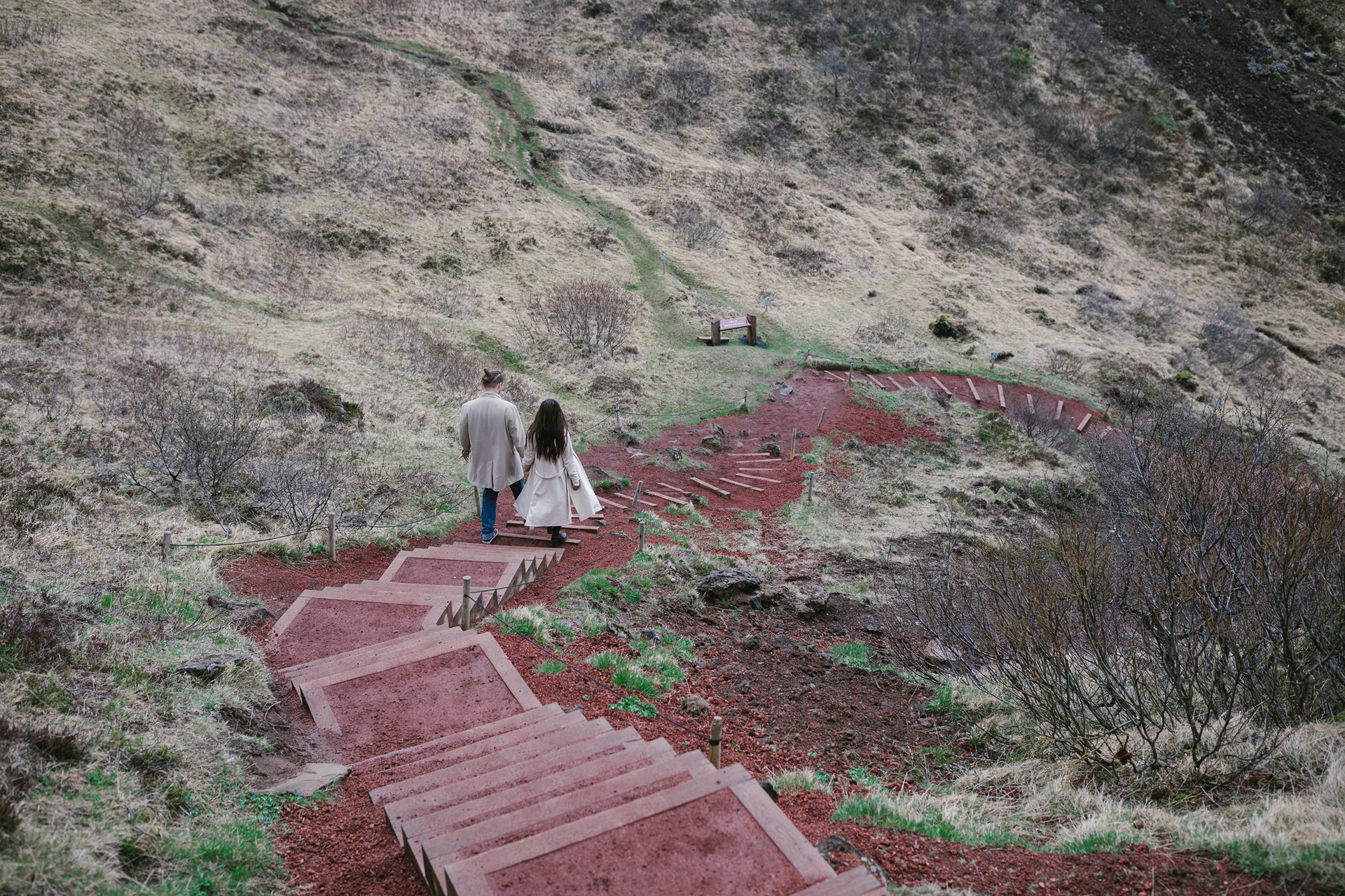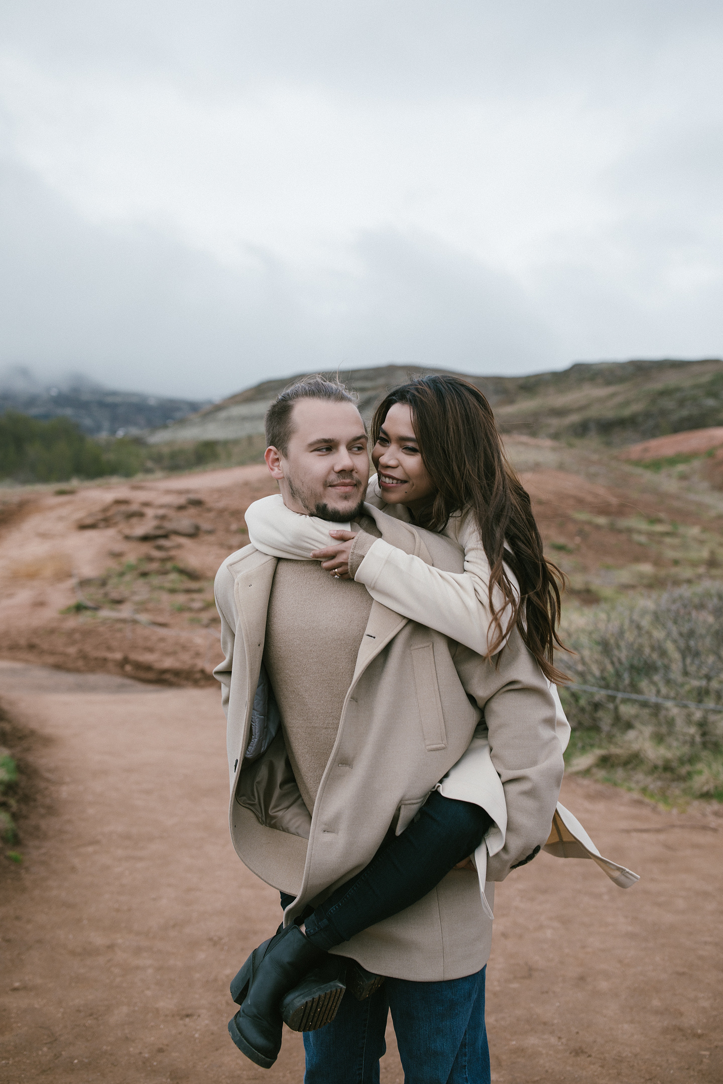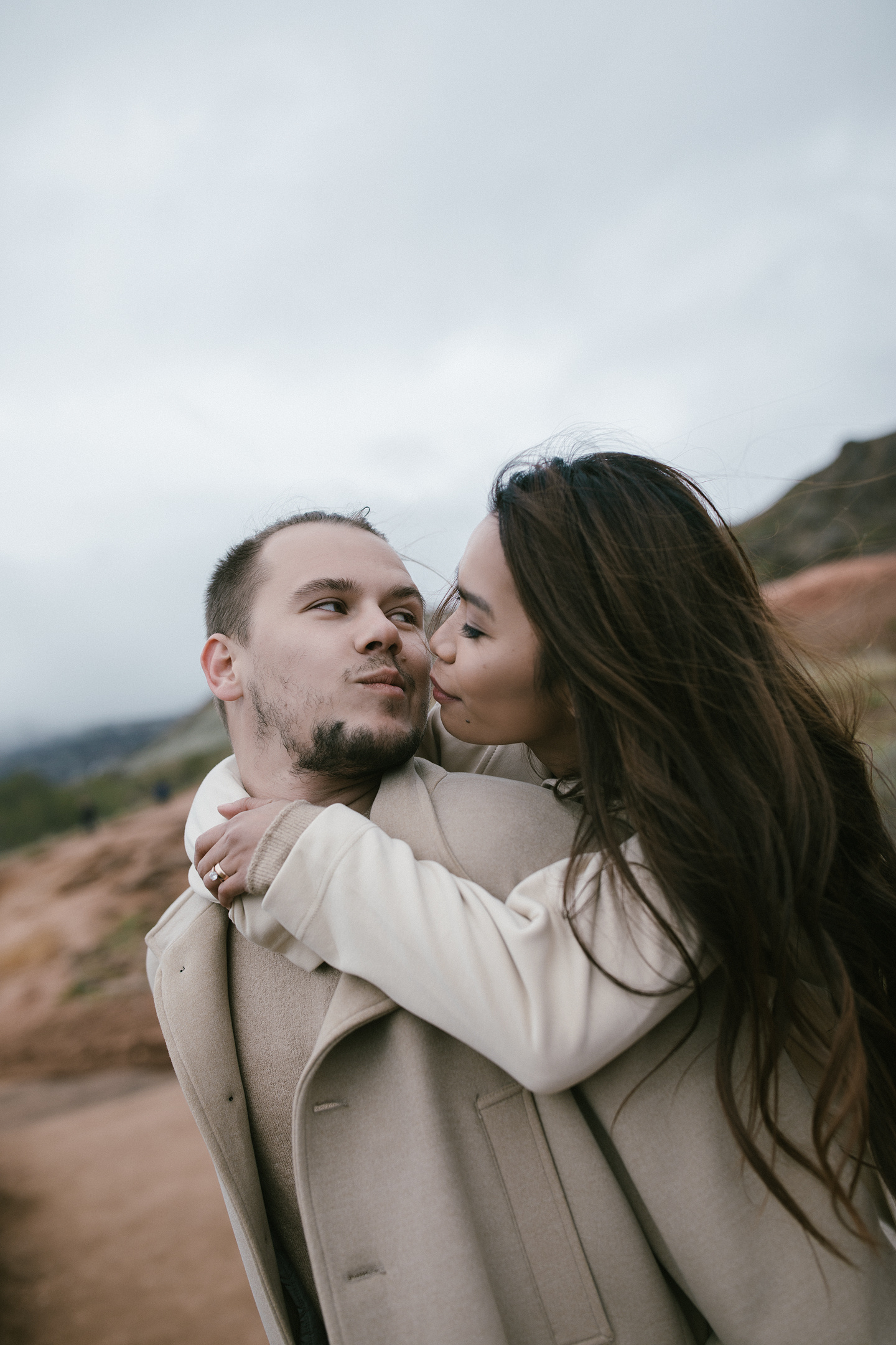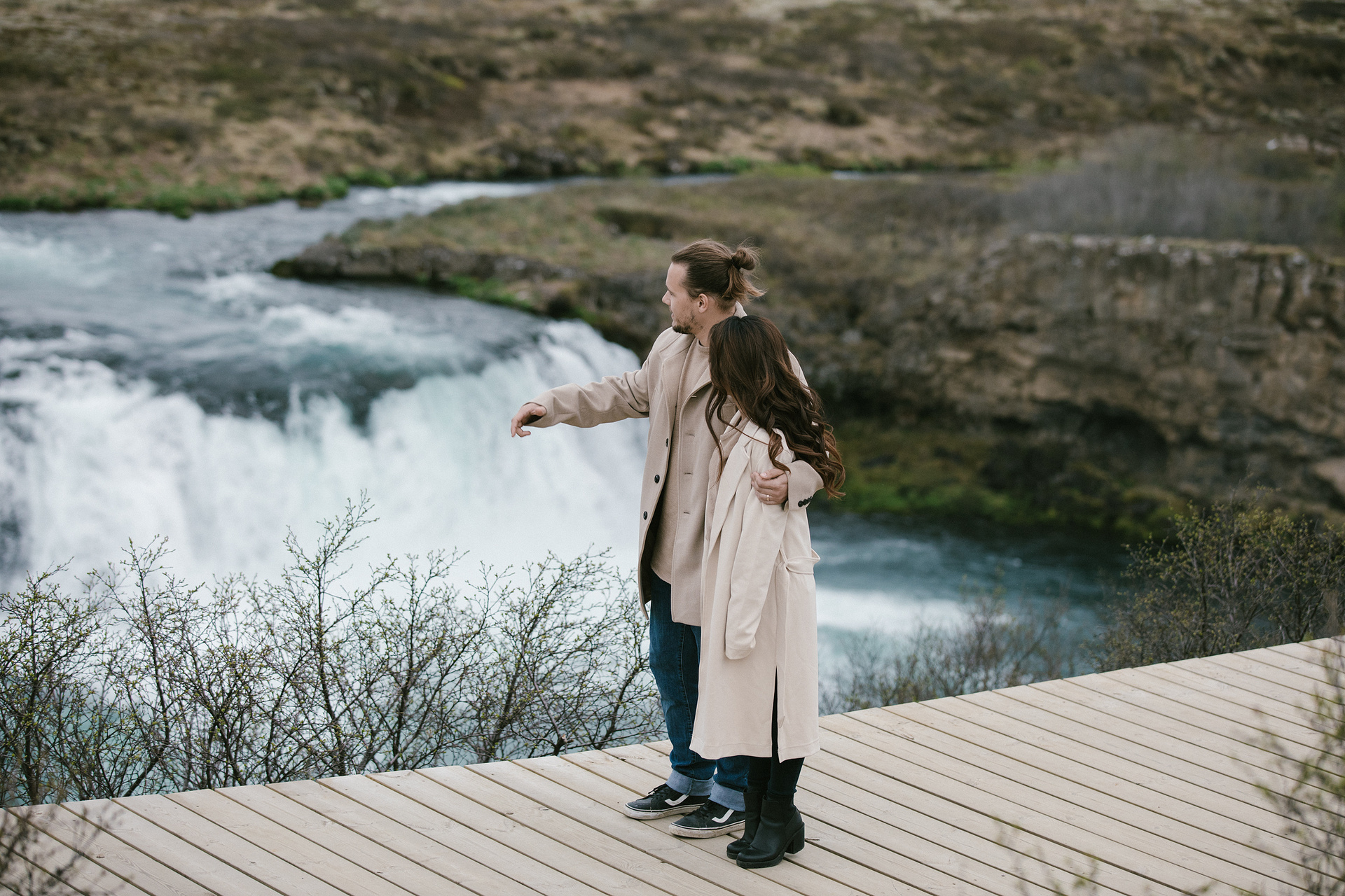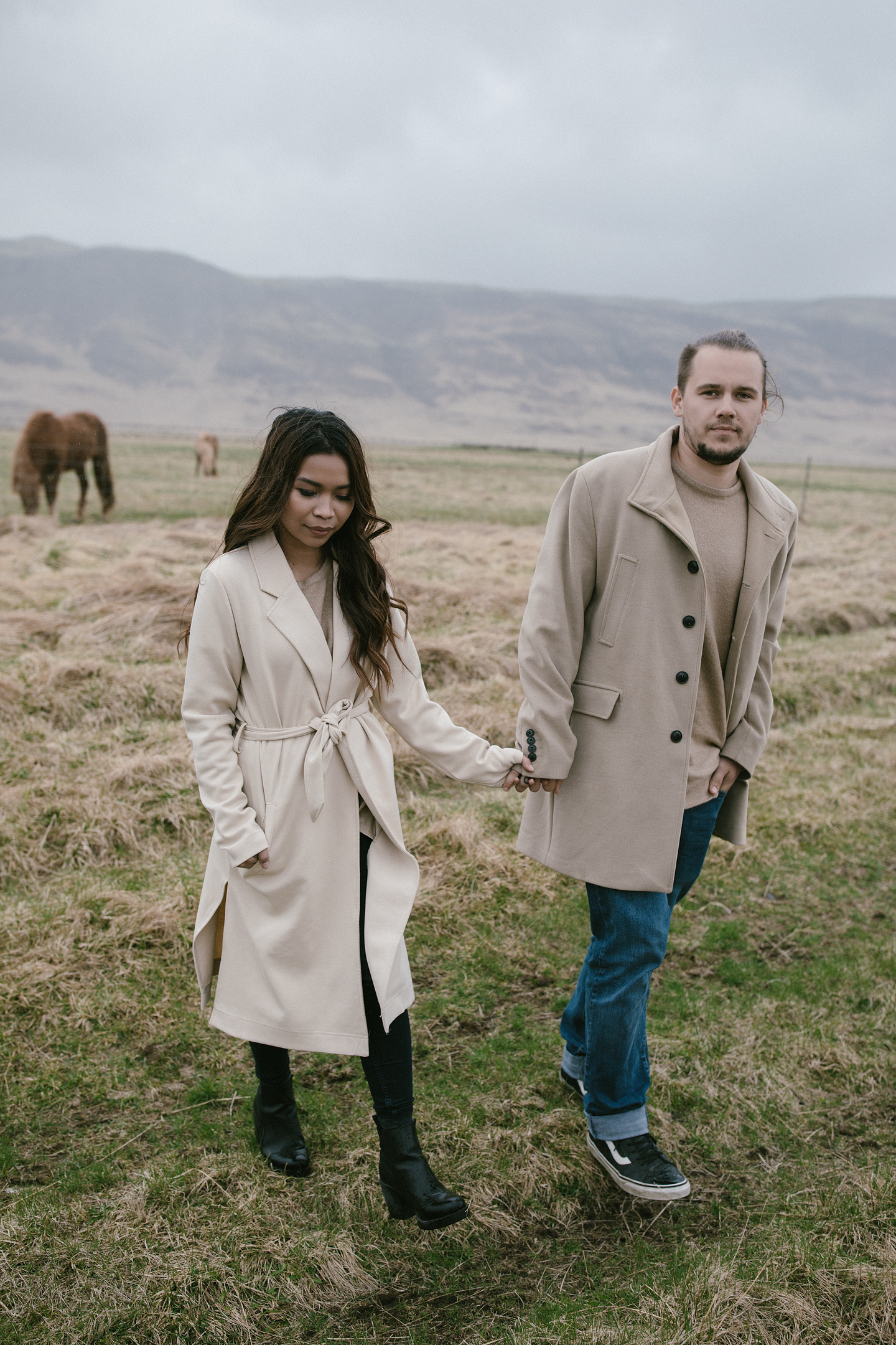 Neila & Nikita left Reykjavík to breathe in the wild air of Iceland. The roads carried them into a landscape that smelled of sulfur and pulsed with the steam of geysers. At Gullfoss, the mist settled into their hair like a secret blessing of water and wind. On their way, they stopped to feed Icelandic horses and admired the emerald waters of a canyon. Finally, at the crater lake of Kerid, where fire once yielded to water, they stood at the edge, whispered their love to each other, and descended to the lake. There, by the shore in the rain, they kissed — as if nature itself had blessed their union.