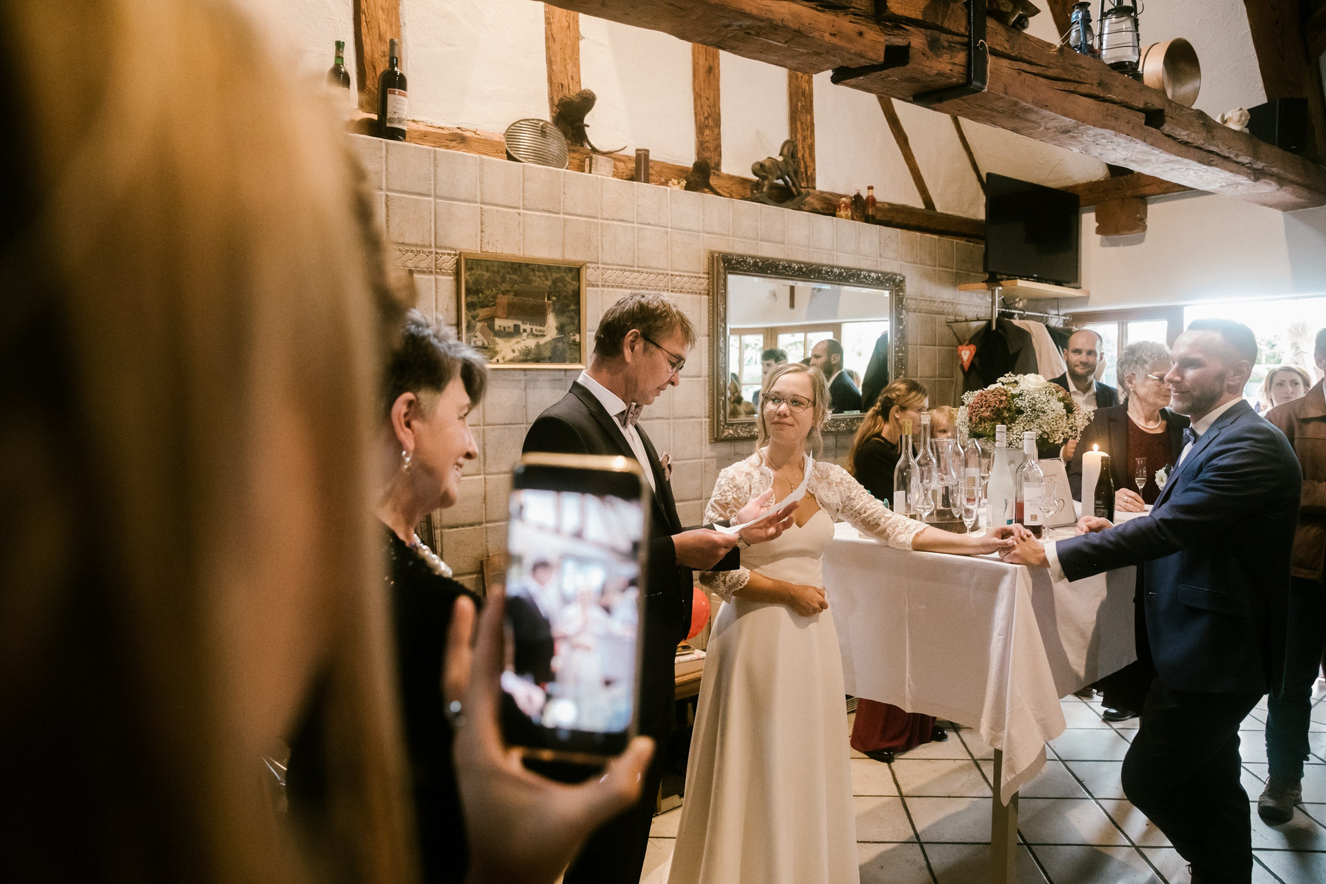 Sarah & Adriano gaben sich das Ja-Wort im Standesamt Markdorf, umgeben von Liebe und einer besonderen Wärme. Später fanden sie im Weinberg Augenblicke nur für sich, begleitet vom gedämpften Licht eines wolkigen Tages, und es war ein Spaziergang voller Zärtlichkeit und stiller Freude. Und dann erwartete sie ein Fest im Café im Kreis von Familie und engen Freunden, erfüllt von Stimmen, Lachen und dem Klingen von Gläsern.